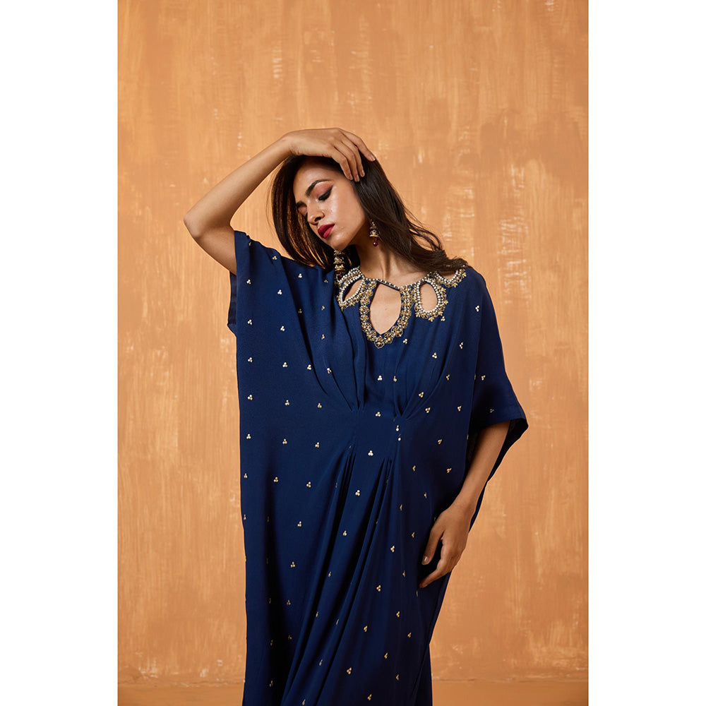 Radha Sharma Navy Blue Georgette Gold and Pearl Handwork Kaftan