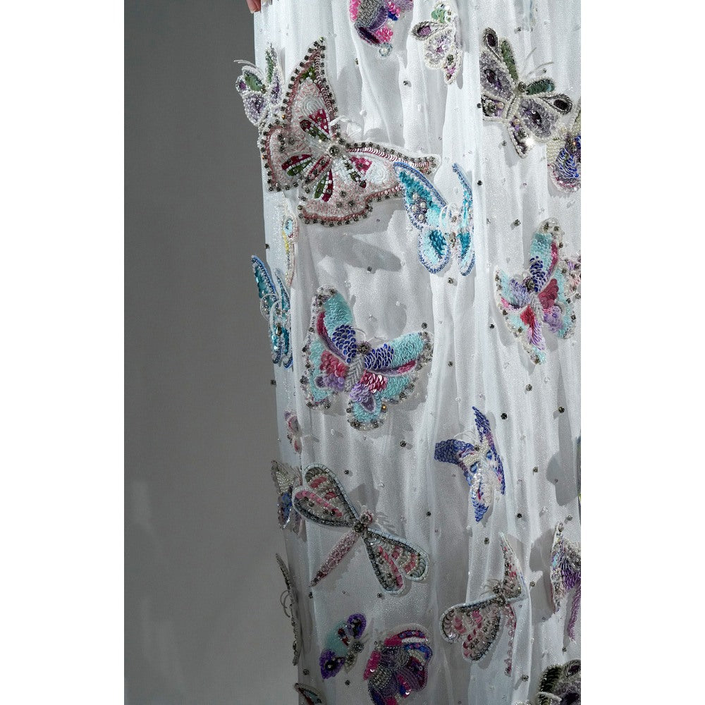 Description : Elevate Your Look with The Ariel Butterfly Cape, Crafted From Shimmer Georgette and Adorned with 3D Hand-Embellished Butterflies Detailed In Sequins and Glass Crystals. Perfect with The Ariel Butterfly Top and Daphne Drape Skirt, or Layered Over Any Outfit, This Cape Adds A Touch Of Ethereal Luxury and Elegance.