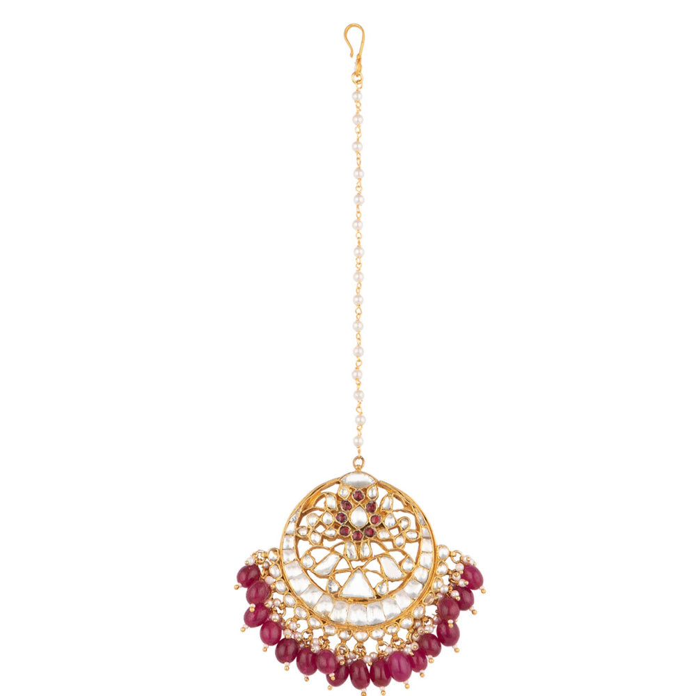 RIANA JEWELLERY Triangle Piece Tikka With Maroon Hangings