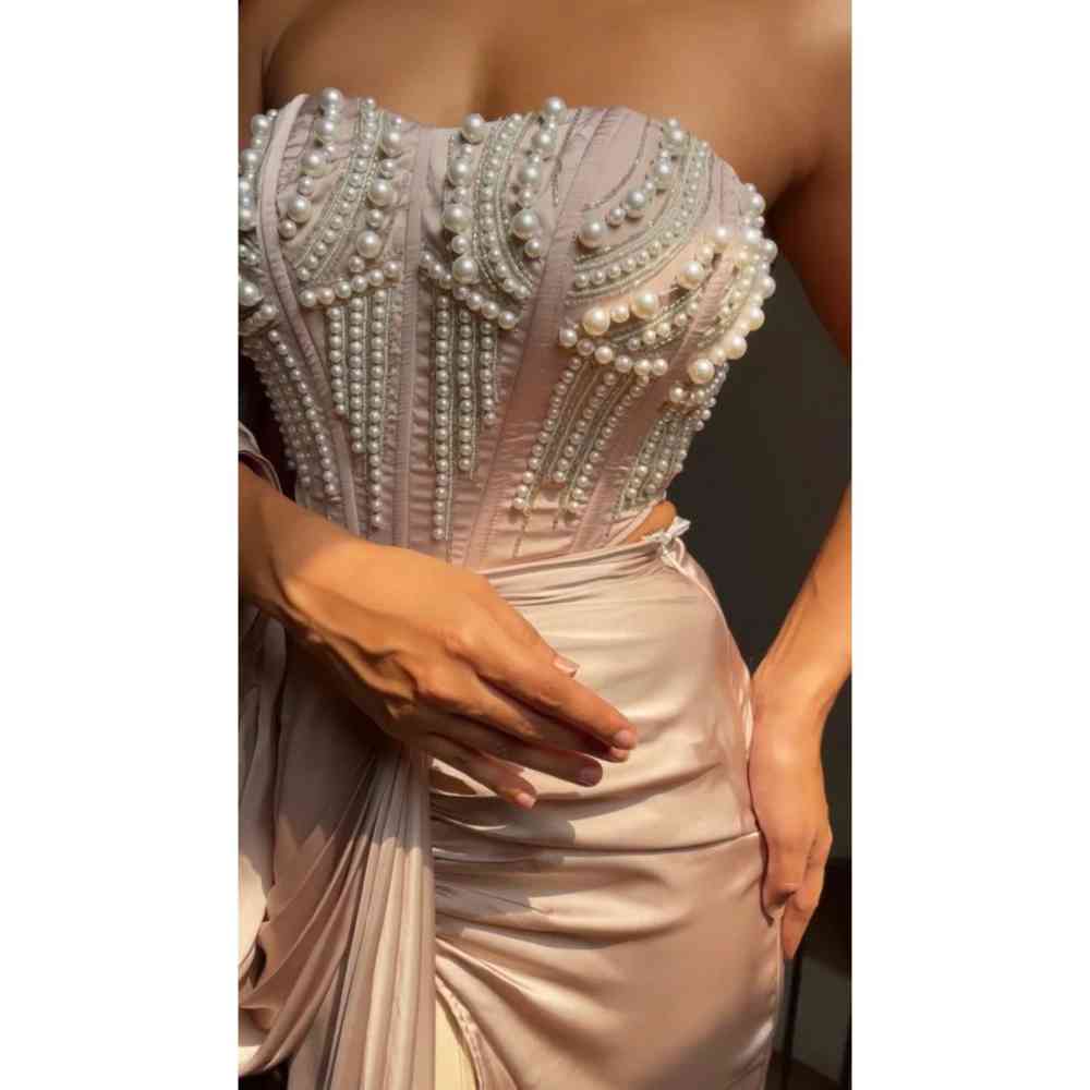 Leila Champagne Hand Embroidered Corset Without Sleeves