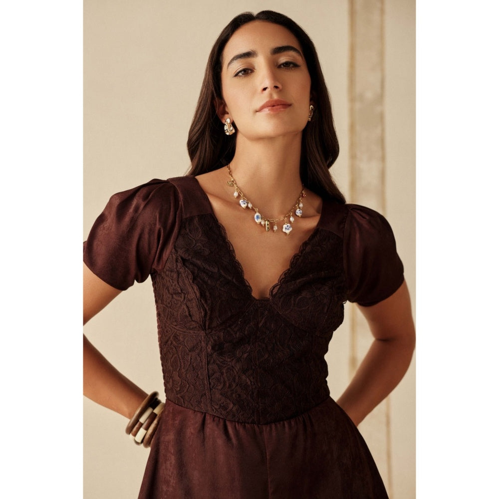description : Channel style and elegance in this wine maxi dress from Sage By Mala. Crafted from satin, this alluring maxi dress features cap sleeves and a v-neck. Style it with a pair of heels and minimal jewellery to complete the look.