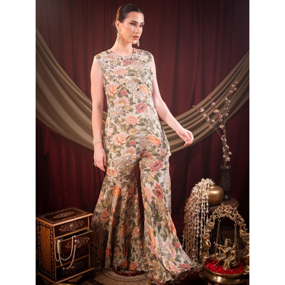 Beige Alina Sharara with Top (Set of 2)
