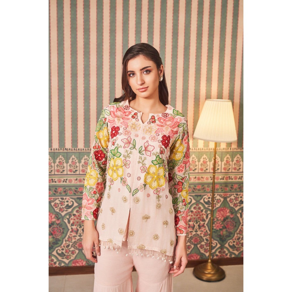 Pink Floral Top with Sharara (Set of 2)