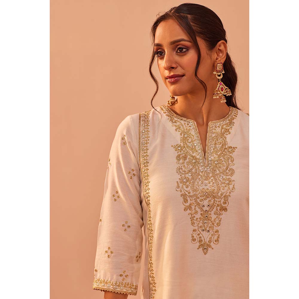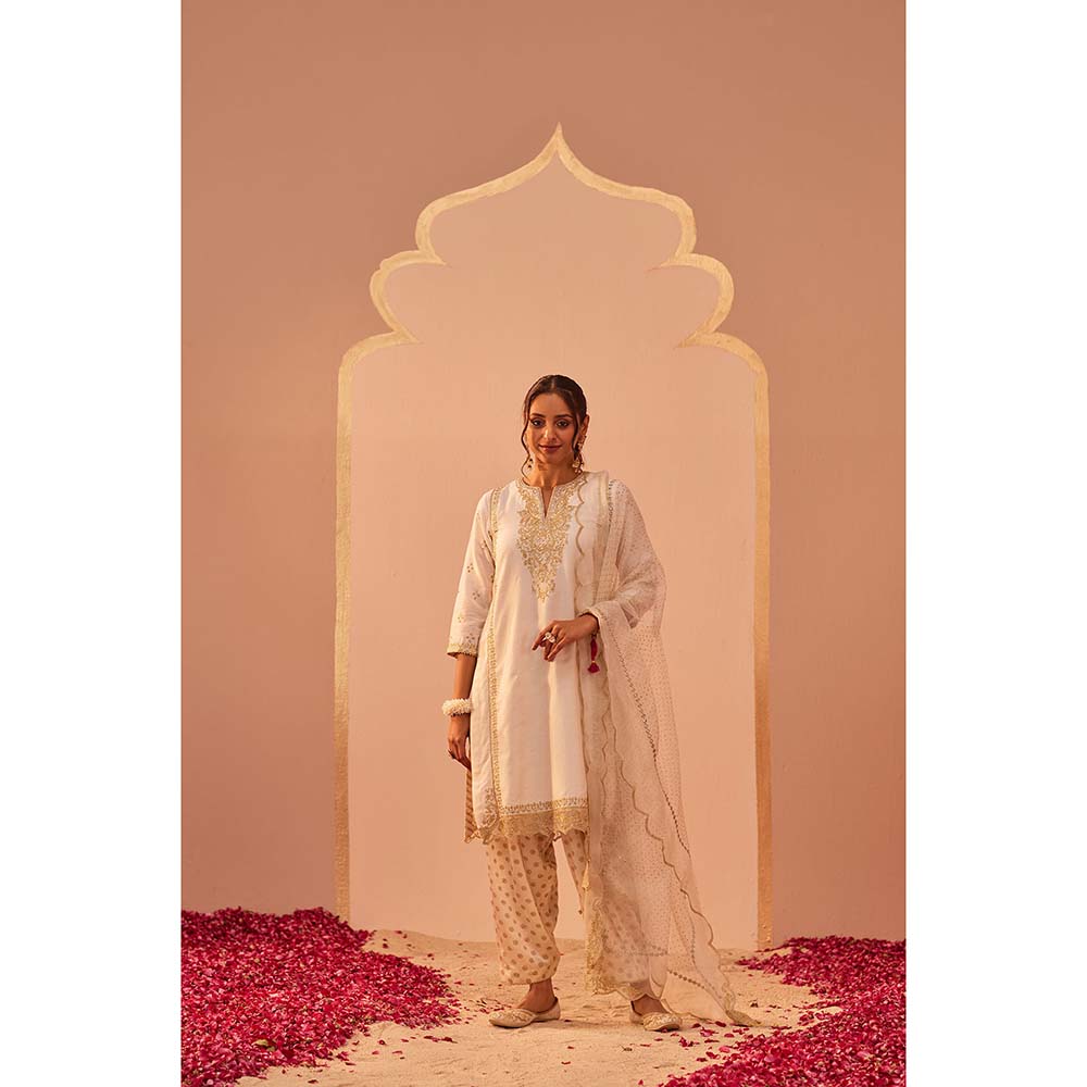 Daisy Ivory Kurta With Salwar And Dupatta (Set of 3)