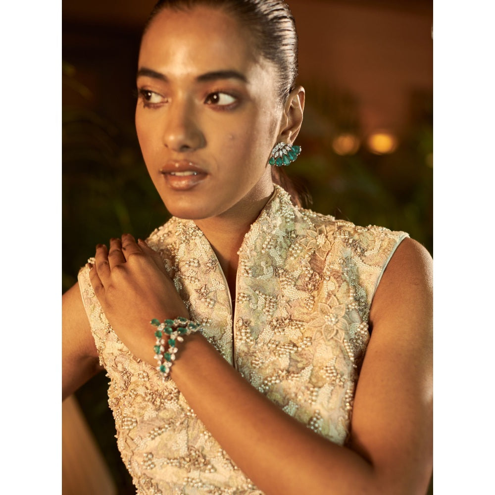 Shreeka Beigie Satin Embroidered Draped Skirt (Set of 2)