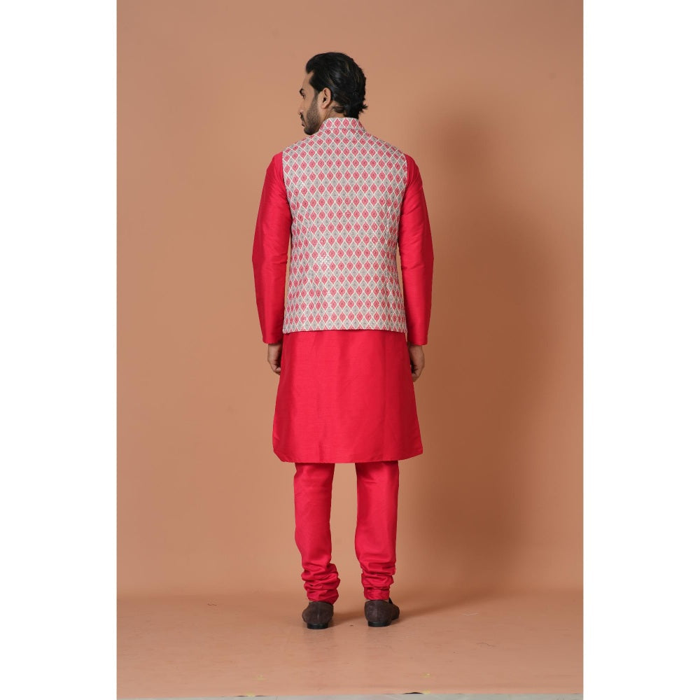 Pink Printed Premium Quality Silk Made Nehru Jacket for Men