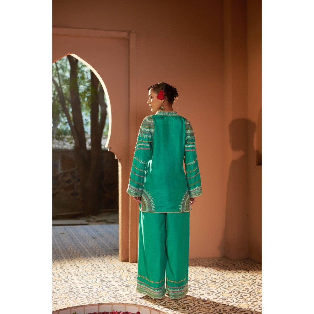 Sonia Khatri Deep Sea Green Kurti with Palazzo (Set of 2)