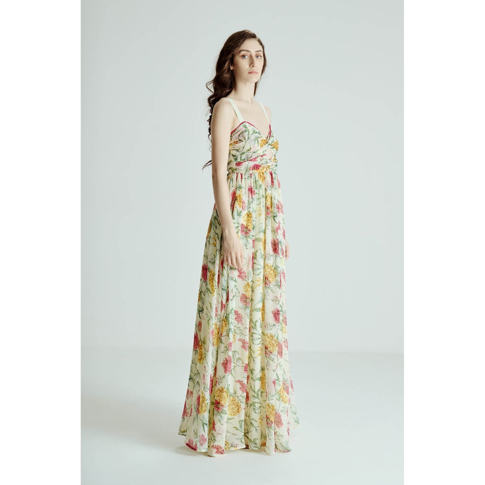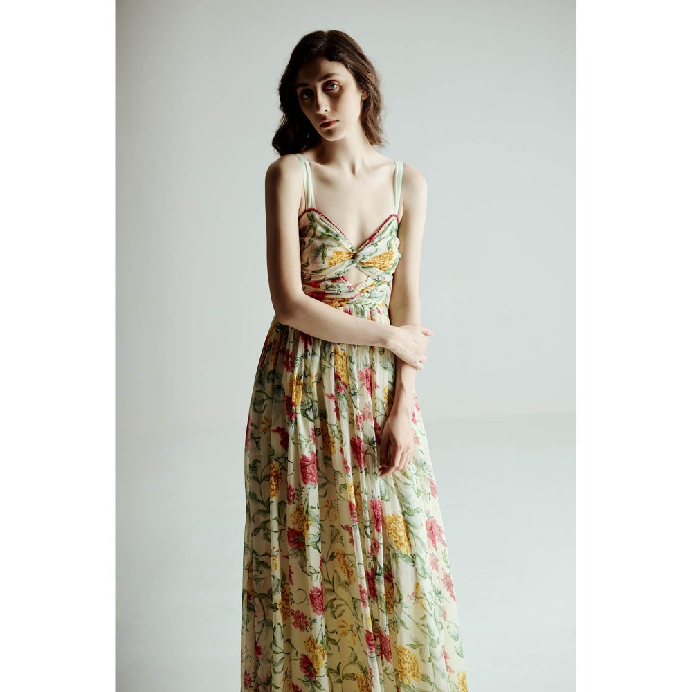 Green Cut Out Floral Maxi Dress