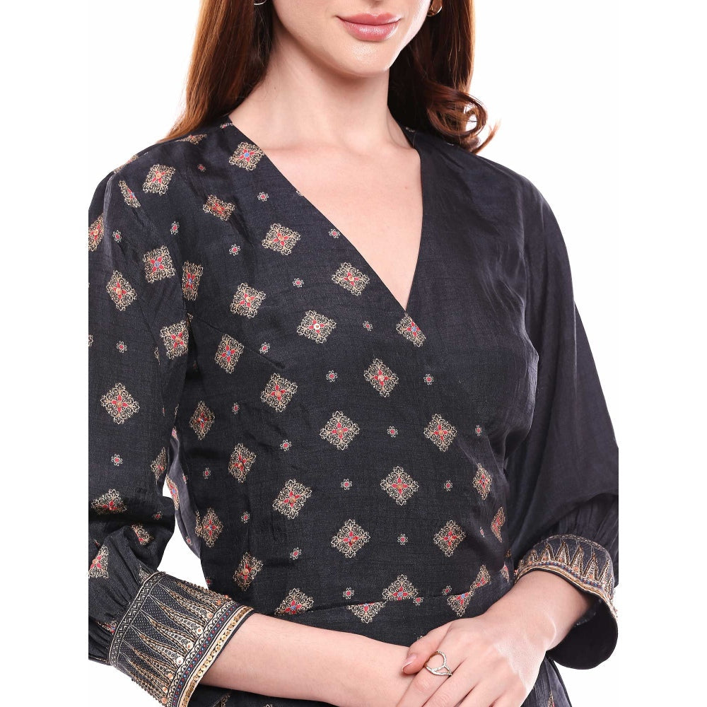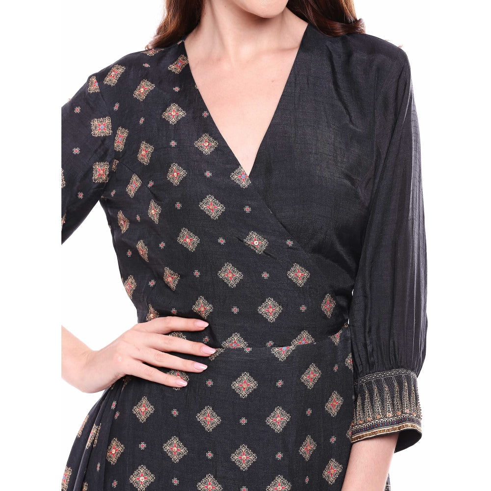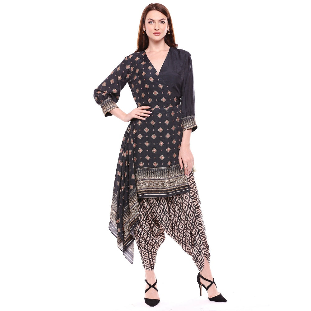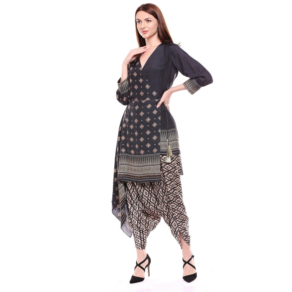 Black Wrap Kurta With Dhoti Pant - Customisable (Set of 2)