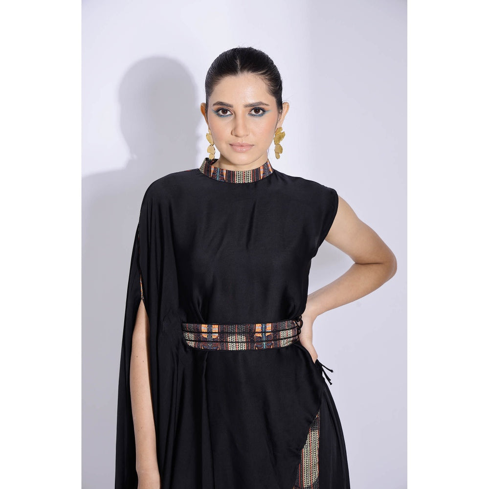 Black Georgette Satin Embellished Kurta with Pant and Belt (Set of 3)