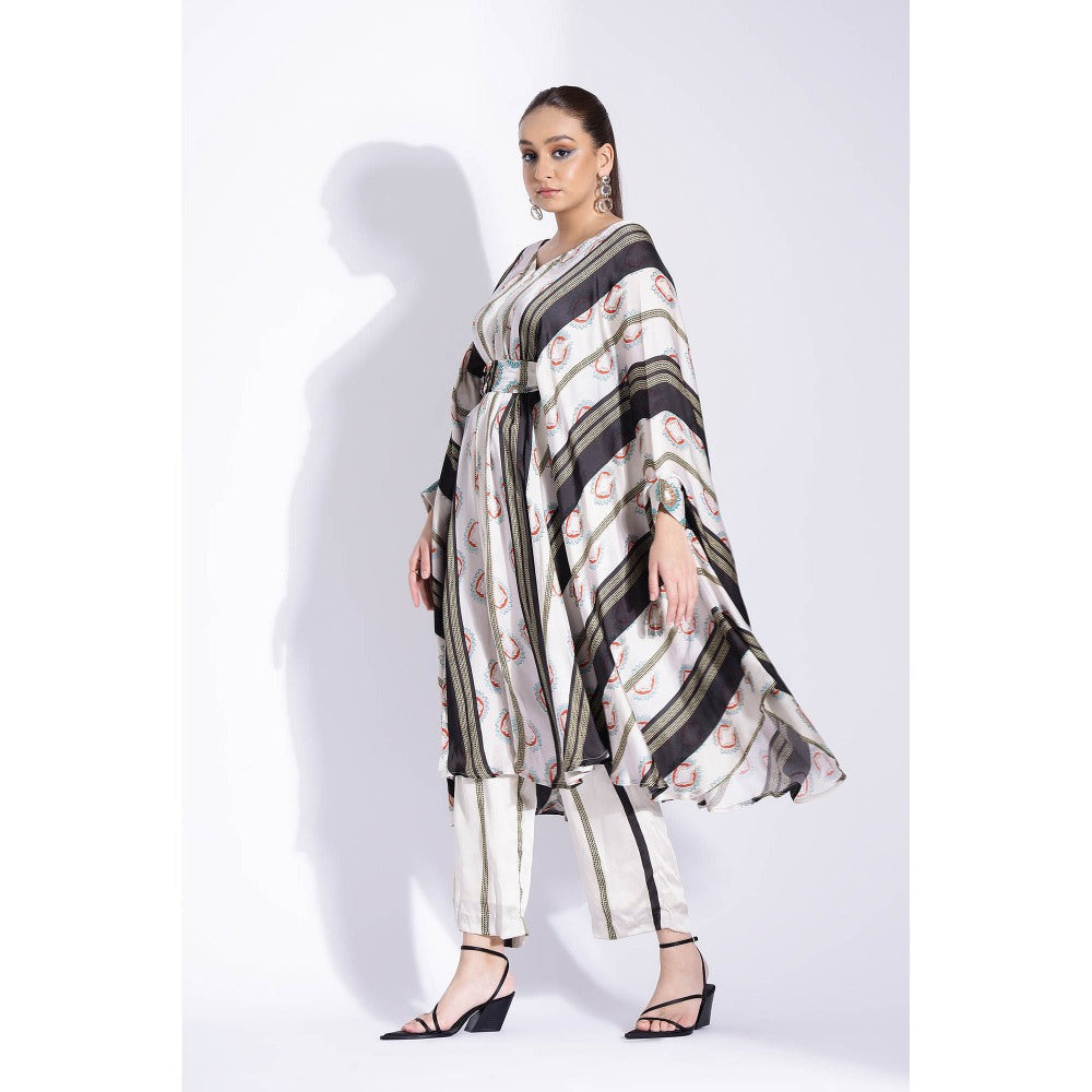 Studio Surbhi Multicolor Georgette Satin Embellished Kaftan with Pant and Belt (Set of 3)