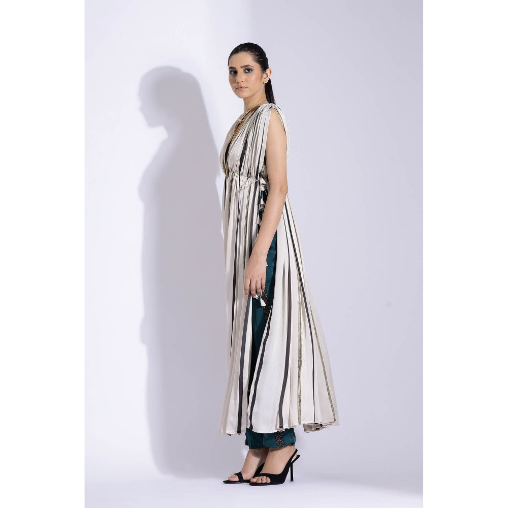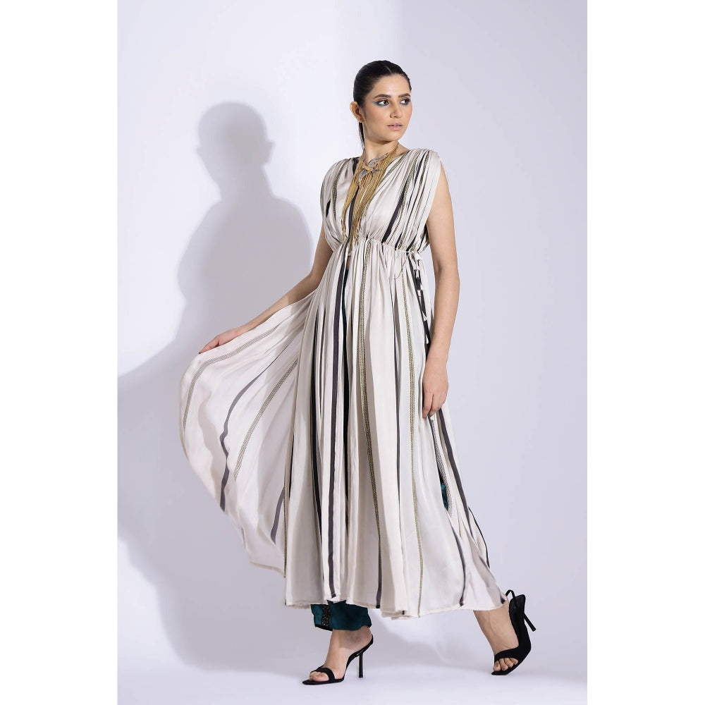 Description : Featuring A Georgette Satin Hand Draped, Digitally Printed Kurta with A Slit and A Tube Blouse Inside Paired with Straight Pants.