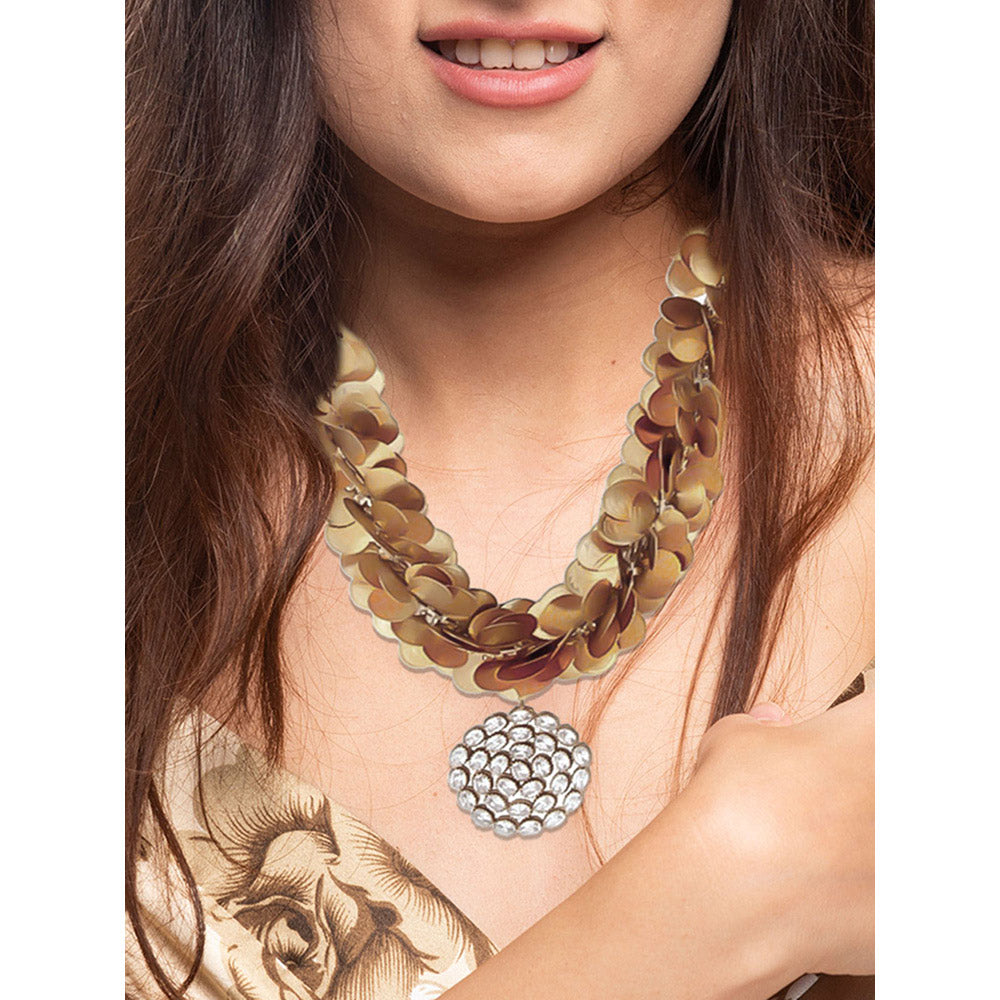 Description : Admire this exquisitely created gold coin cluster necklace adorned with crystals. This stunning neckpiece, which is entirely handcrafted by regional artists, goes well with any outfit and makes a thoughtful gift for celebrations like anniversaries and weddings.