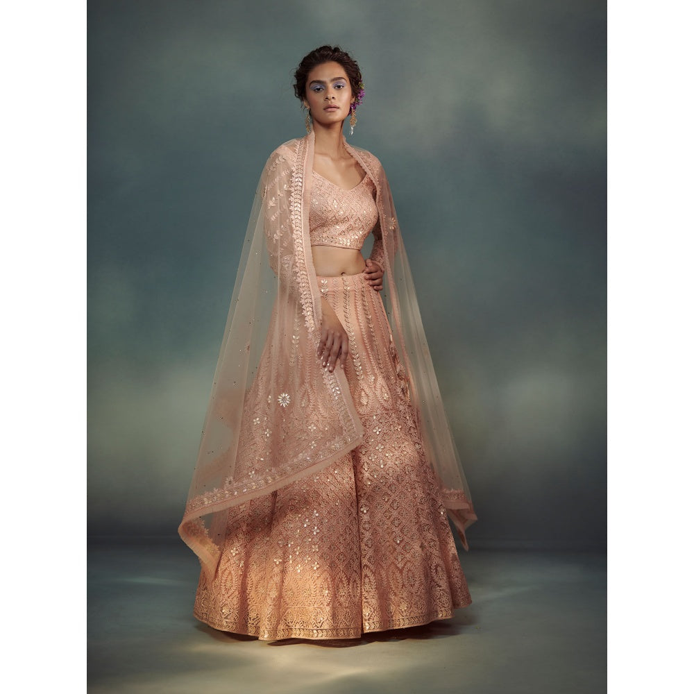 SUHINO Peach Lehenga Blouse & Dupatta (Set of 3)