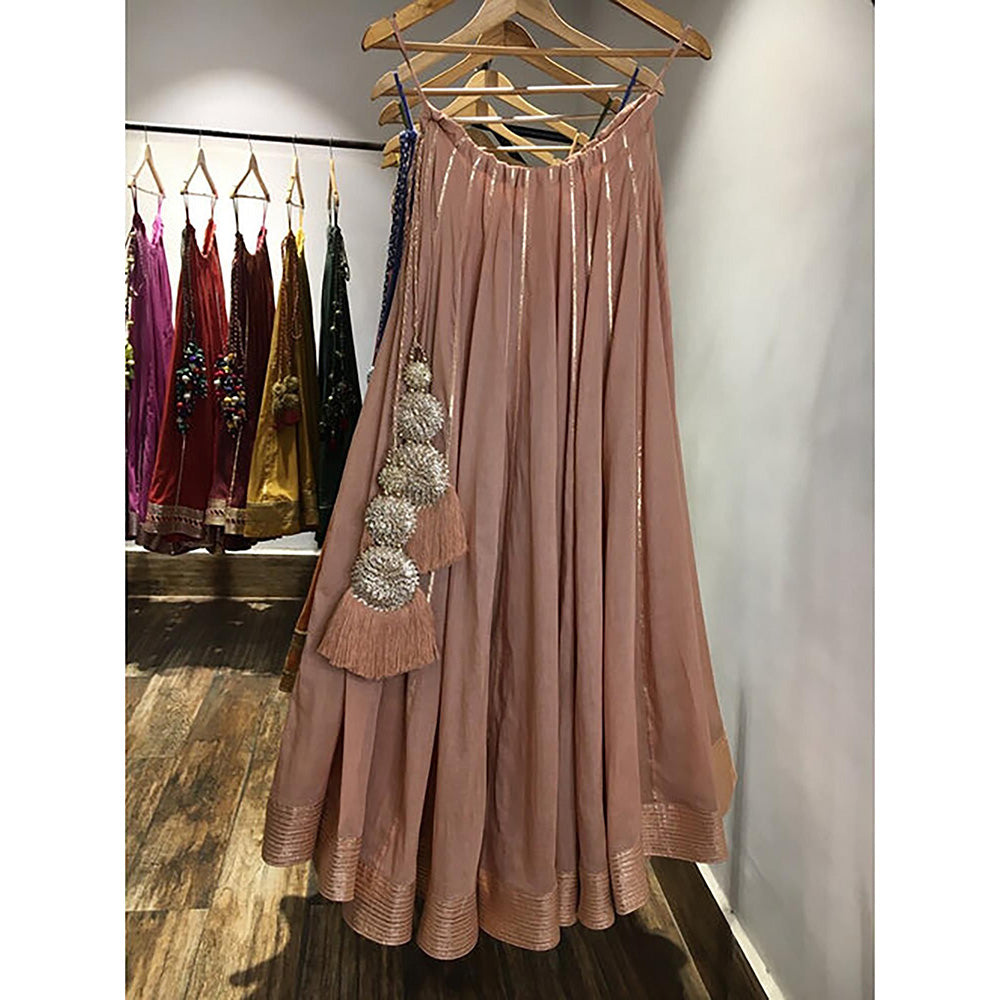 Description : Taraasi Dilshaad Peach Mulmul Cotton Kalidar Ghaghara Skirt (XS)