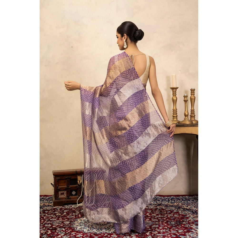 Zal from Benaras Lavender Bandhani Digital Print Handloom Saree Without Blouse