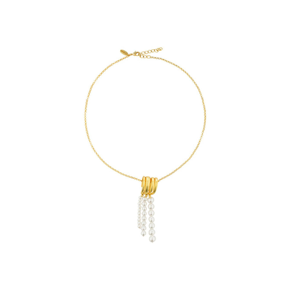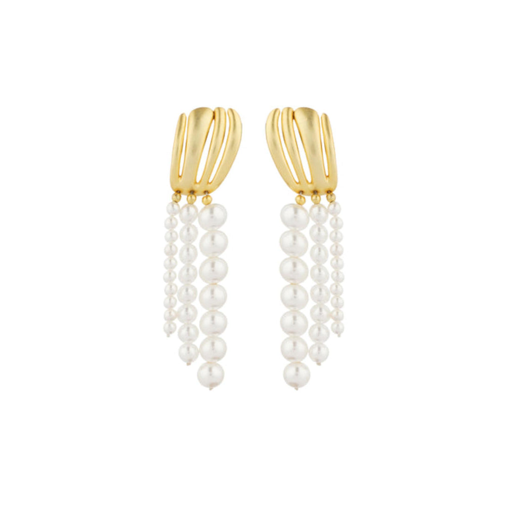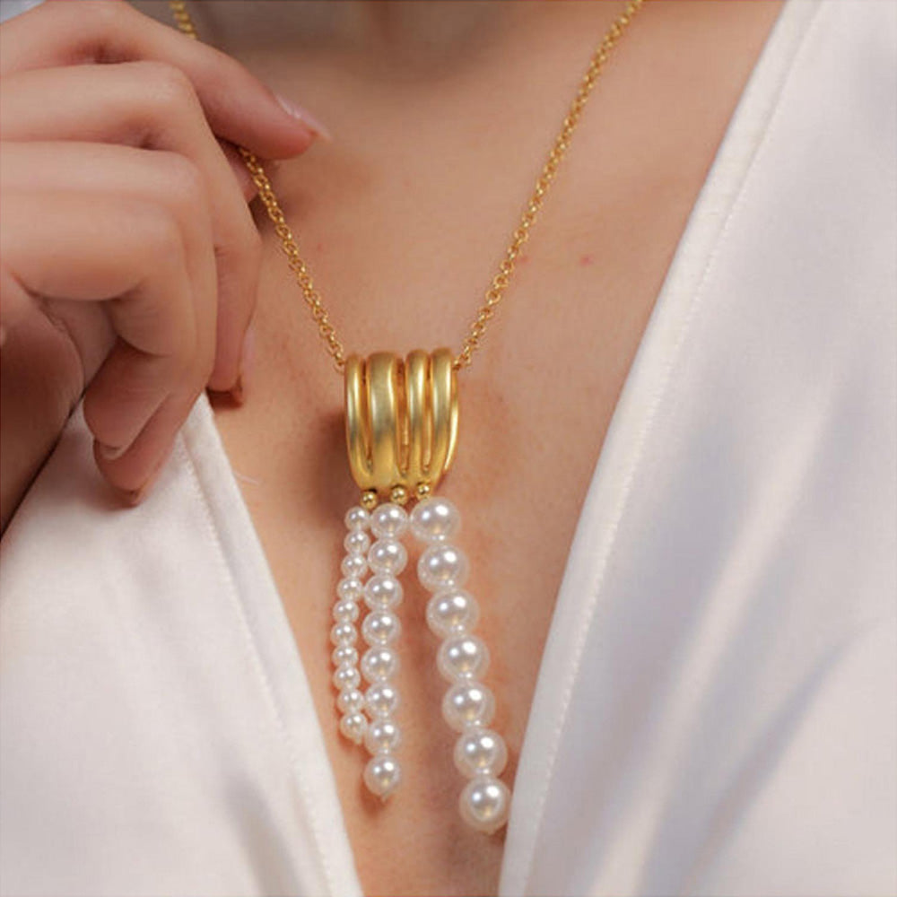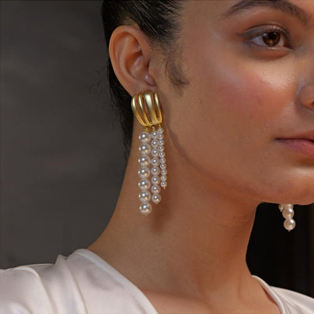 Description : Love pearls but looking for something unique? This is a coordinated jewellery set of a pendant necklace and matching earrings featuring pearls but not in your usual way. We redefine pearls with truly modern aesthetics in the form of a 22kt gold plated oyster inspired motif and dressed with pearl string drops with pearls of different sizes. It s eclectic, unusual, lightweight and interesting making it just perfect go-to and travel accessory. this gift set includes -