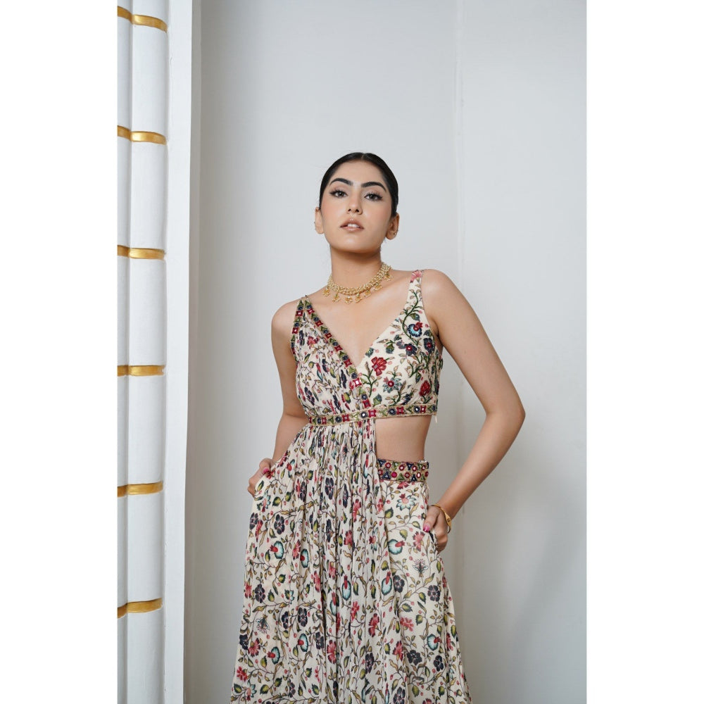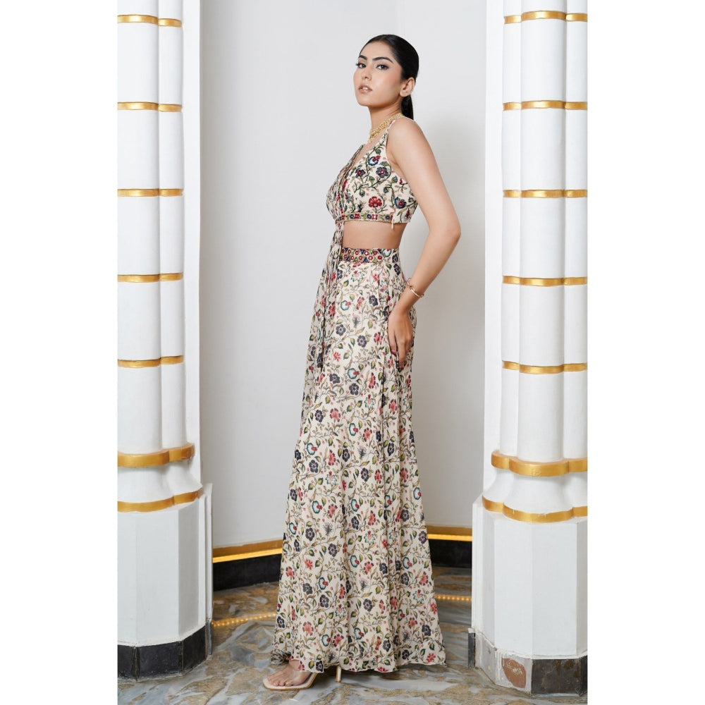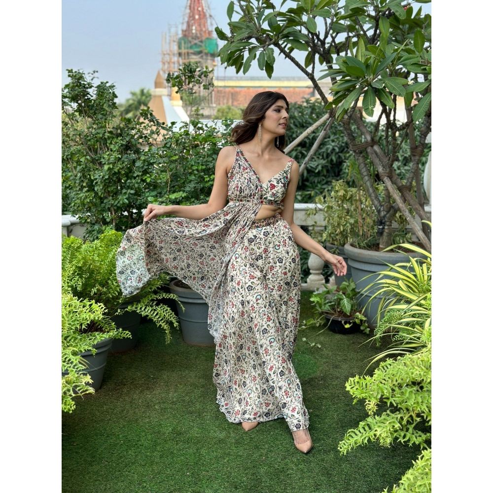 Cream Floral Handkerchief Drape Palazzo with Top (Set of 2)