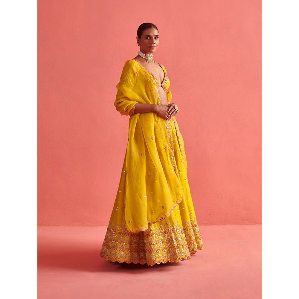 Aarti Sethia Studio Yellow Lehenga with Blouse and Dupatta (Set of 3)