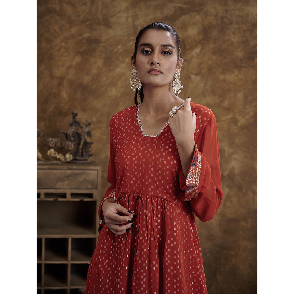 AFFROZ Sitaara Brick Rust Color Kurta with Pant and Dupatta (Set of 3)