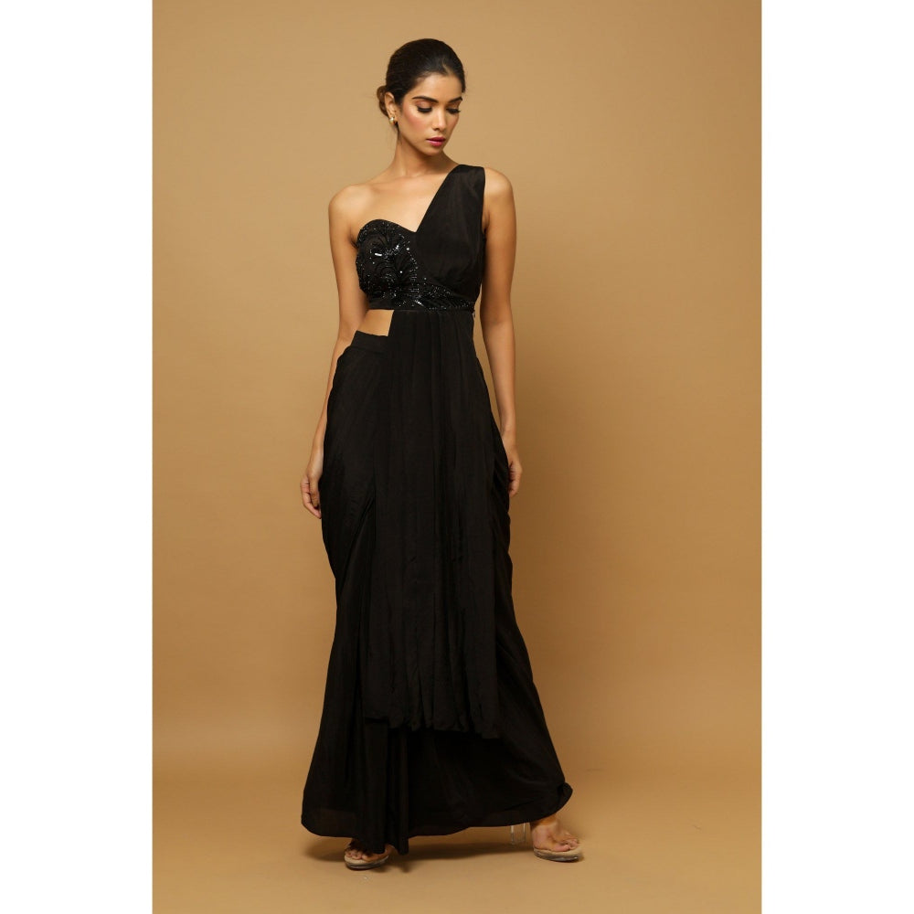 Ahi Clothing Black Two Piece Indo Saree (Set of 2)