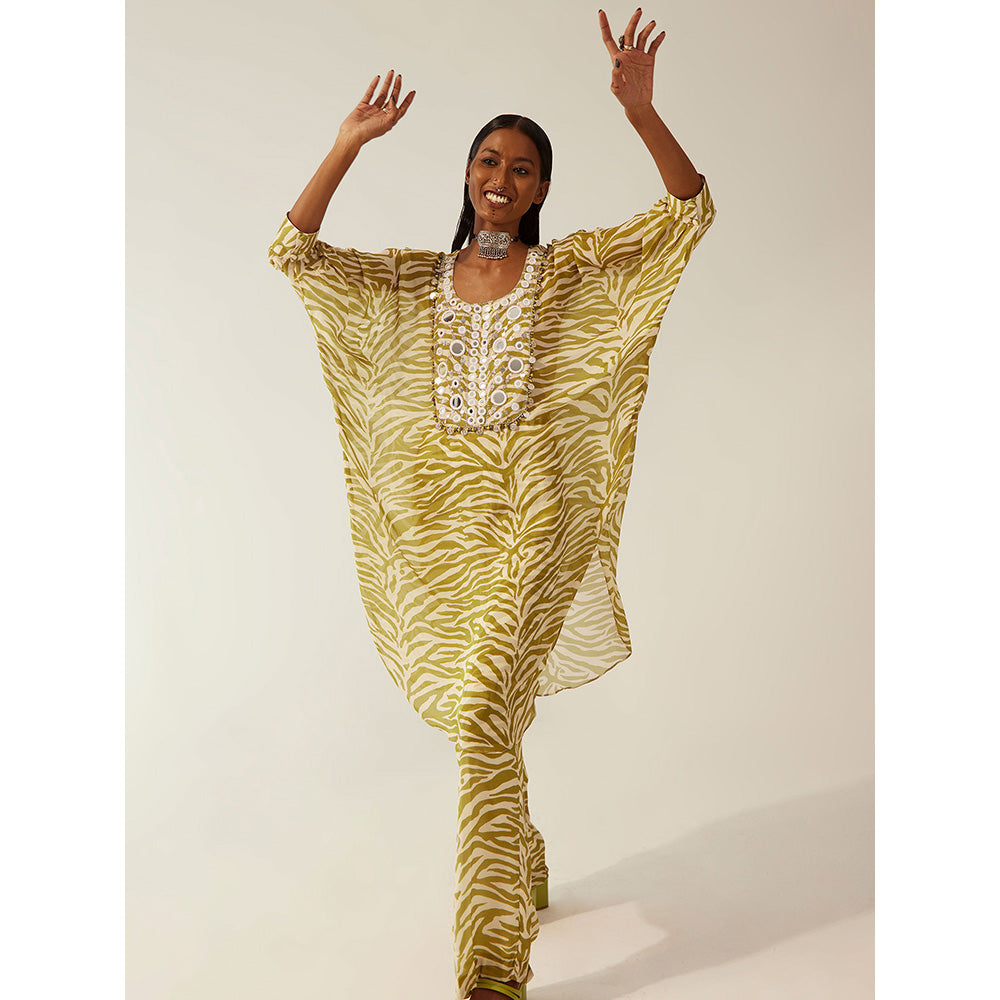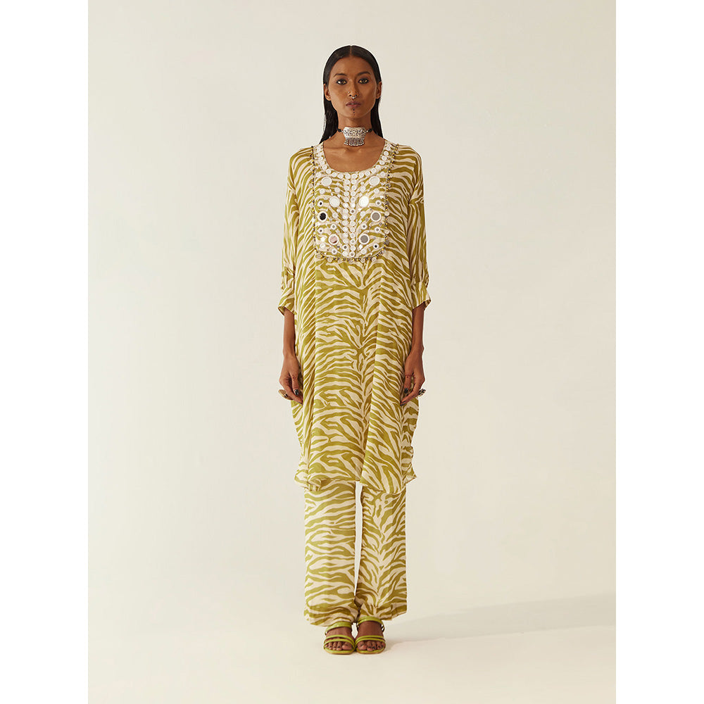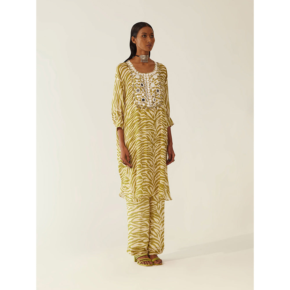 Amka India Green Kasara Kaftan Kurta with Pants (Set of 2)
