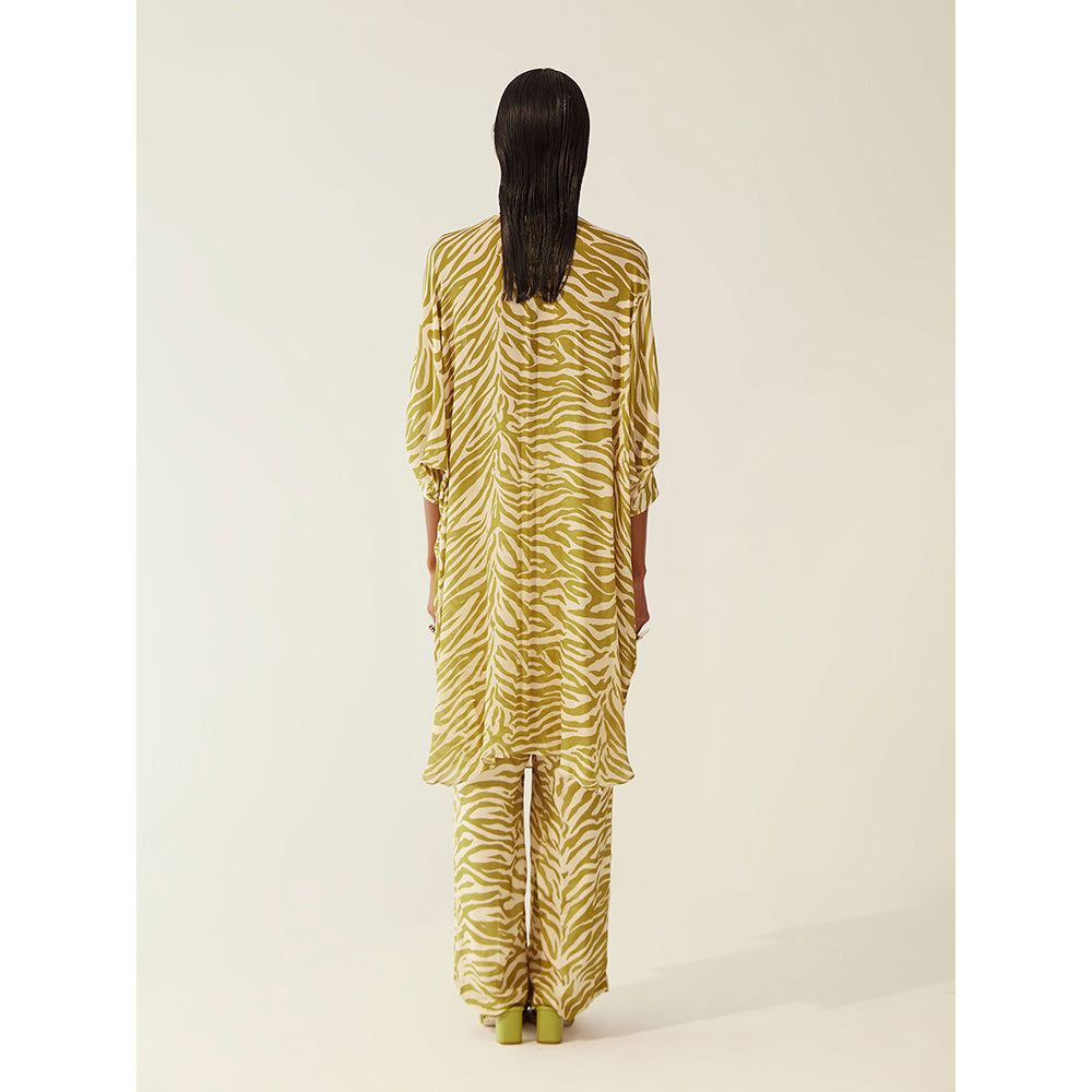 Green Kasara Kaftan Kurta with Pants (Set of 2)