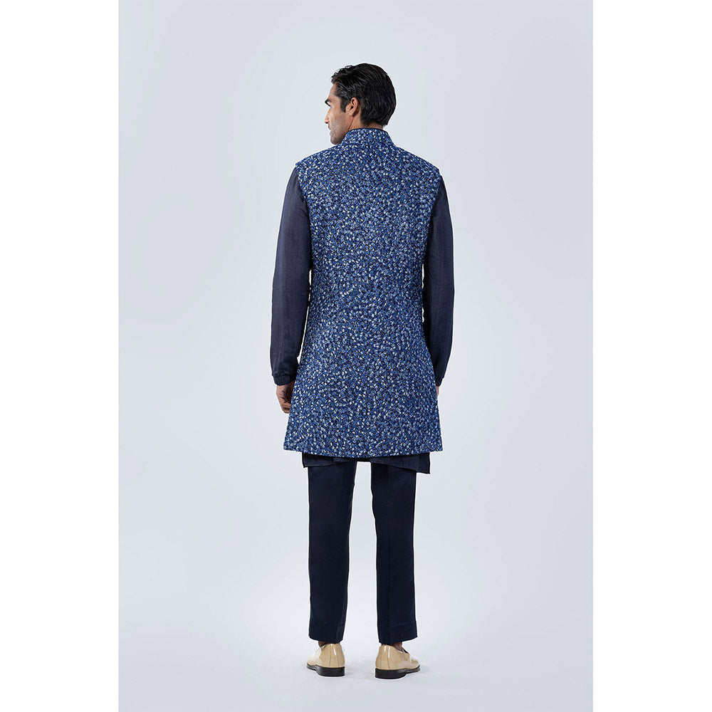 Description : Navy Blue Shaded Thread Work And Bead Embroidered Bundi Set. Tailored to sartorial perfection from premium quality fabric, it assures a soft and soothing touch against the skin. The exquisite silhouette adds to its appeal.