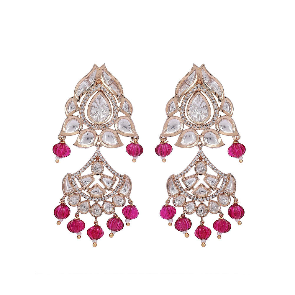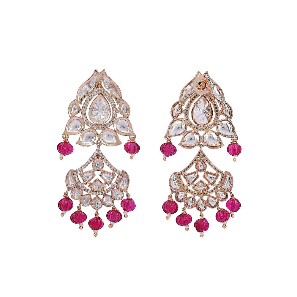 Description : 22KT Gold Plated Kundan Red Beads Necklace Set