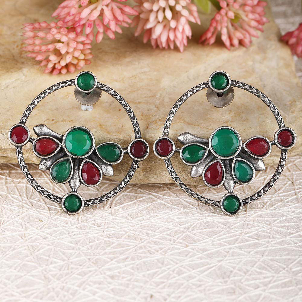Elegant Multi Stone Oxidised Earrings For women