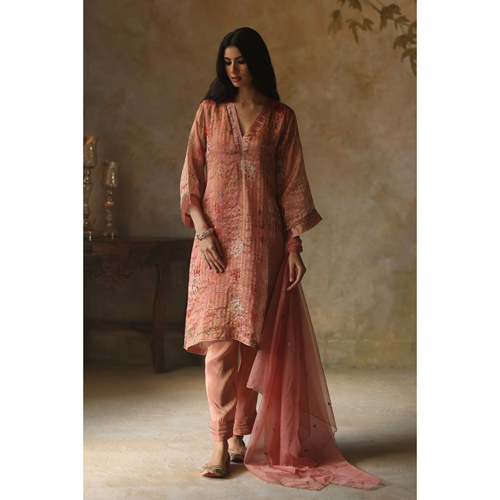 Begum Pret IKAI Peach & Gold Floral Kurta with Pant & Dupatta (Set of 3)