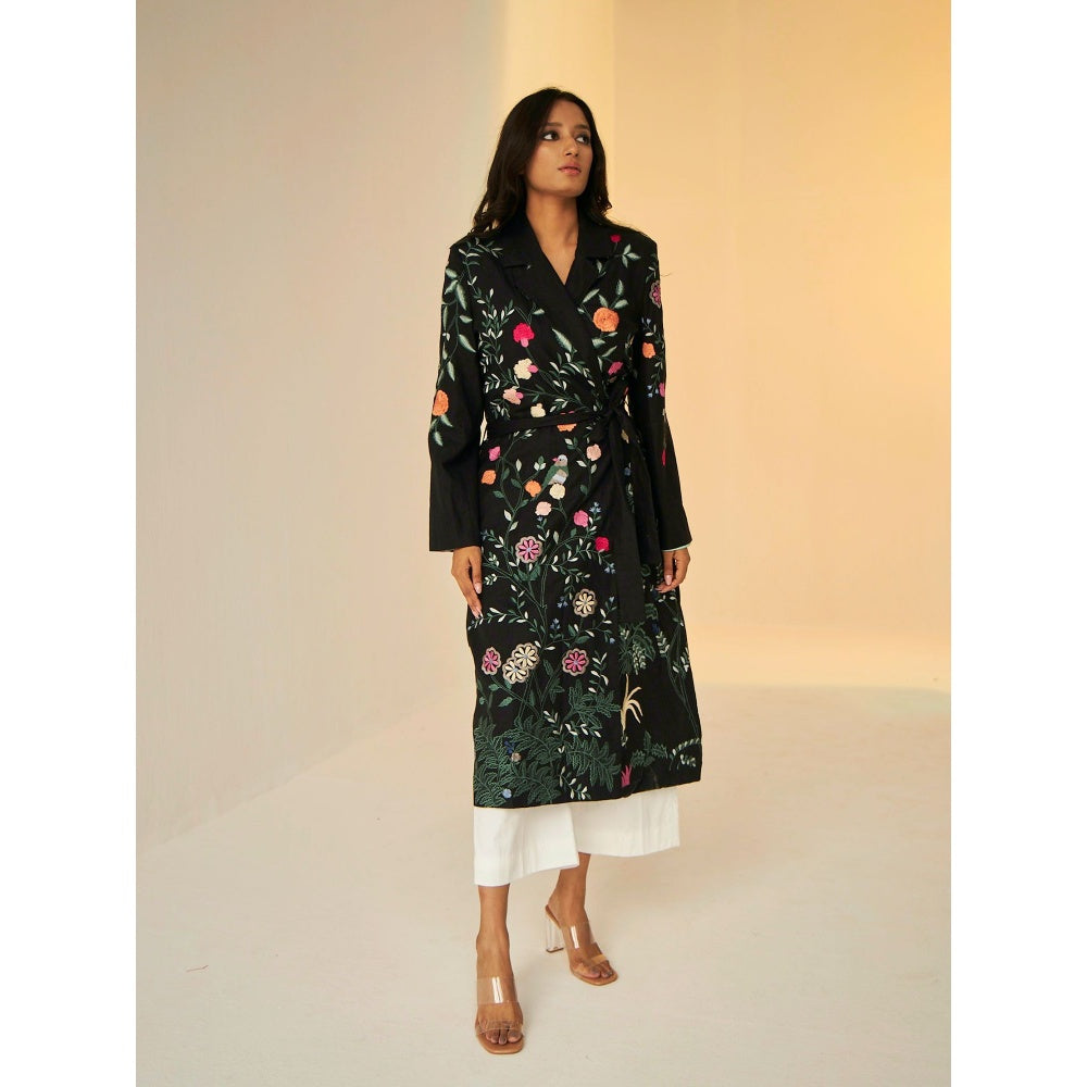 Description : Layer up in style with this long trench coat from Betrue. Crafted using cotton material, it features a full sleeves design and embroidered pattern. Team it with your casual attires and ankle boots to make a statement.