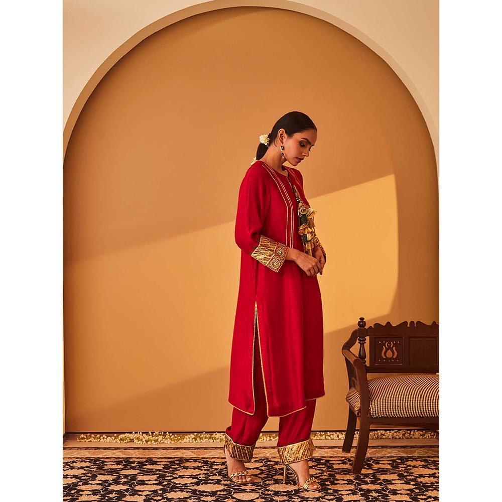 Bo Tree Red Roohaniyat Kurta with Pant (Set of 2)