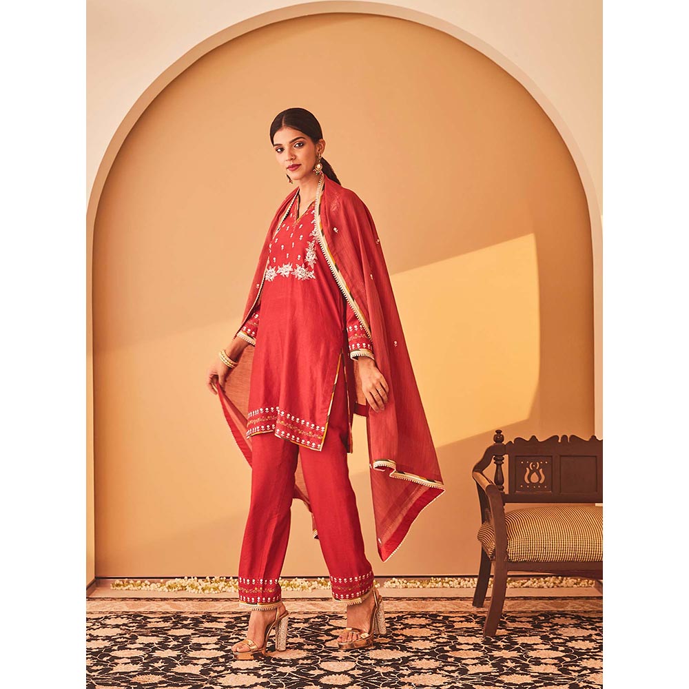 Bo Tree Red Rukhsana Kurta with Pant and Dupatta (Set of 3)