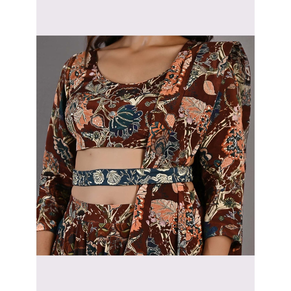 Bohame Zaria Maroon Lehenga (Set of 4)