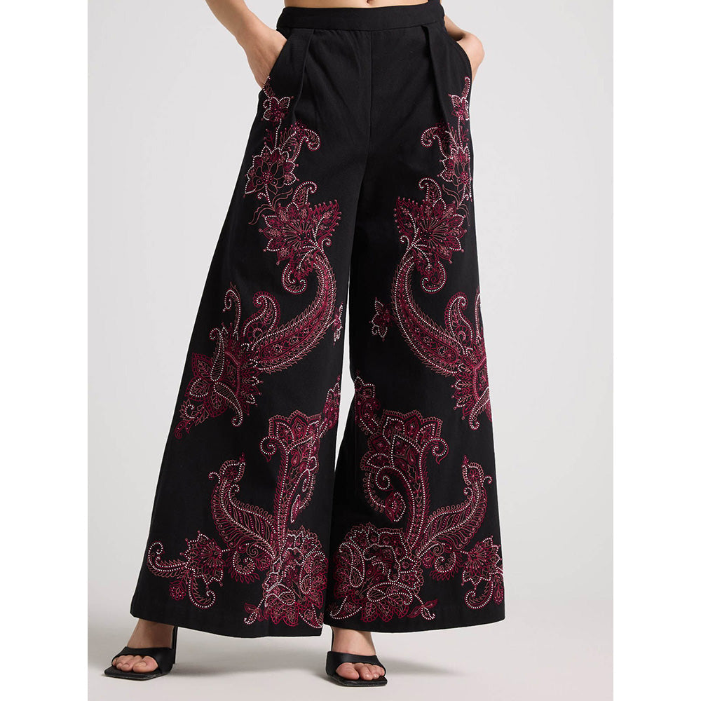 Description : Black Cotton Twill Paisley Threadwork And Beadwork Pants.
