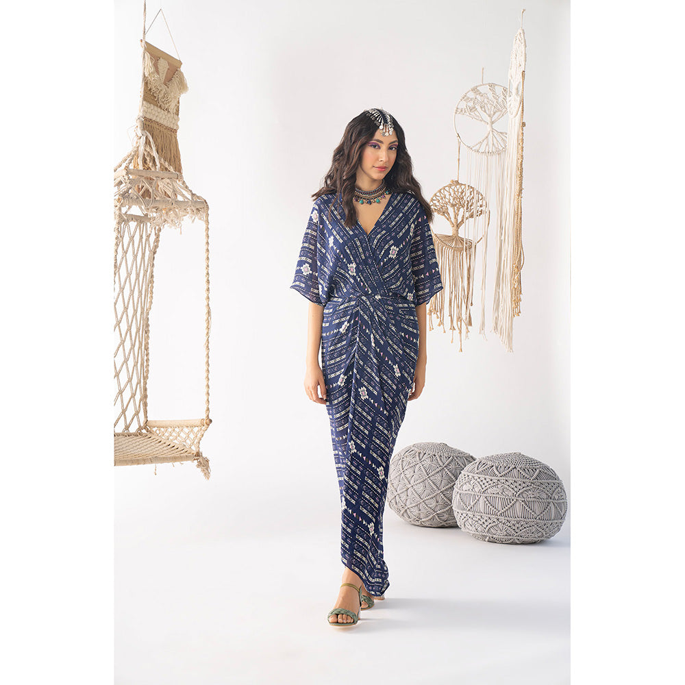 Chhavvi Aggarwal Navy Blue Draped Dress