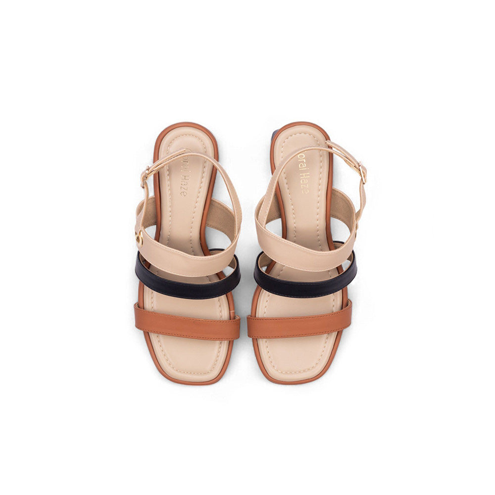 Coral Haze Esme Tan Black and Ivory Strap Heels Sandal