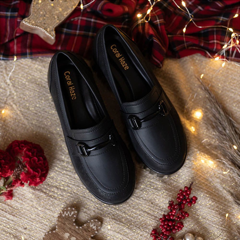Coral Haze Vegan Leather Womem Platform Loafers Black