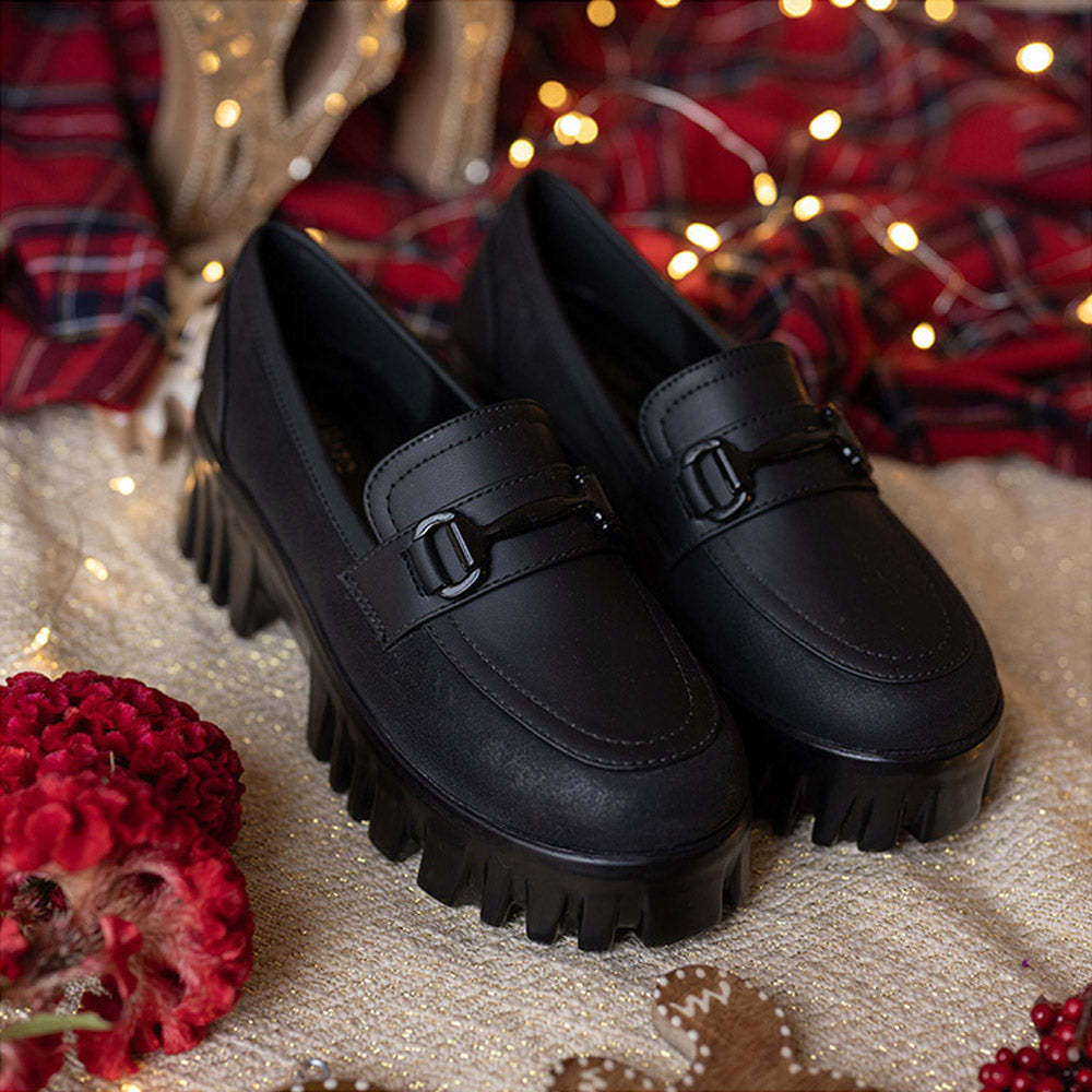 Description : An all-black chunky loafer made from rich genuine leather. Designed to balance bold style with understated elegance, Sylvia is perfect for the modern woman who appreciates comfort with a powerful finish
