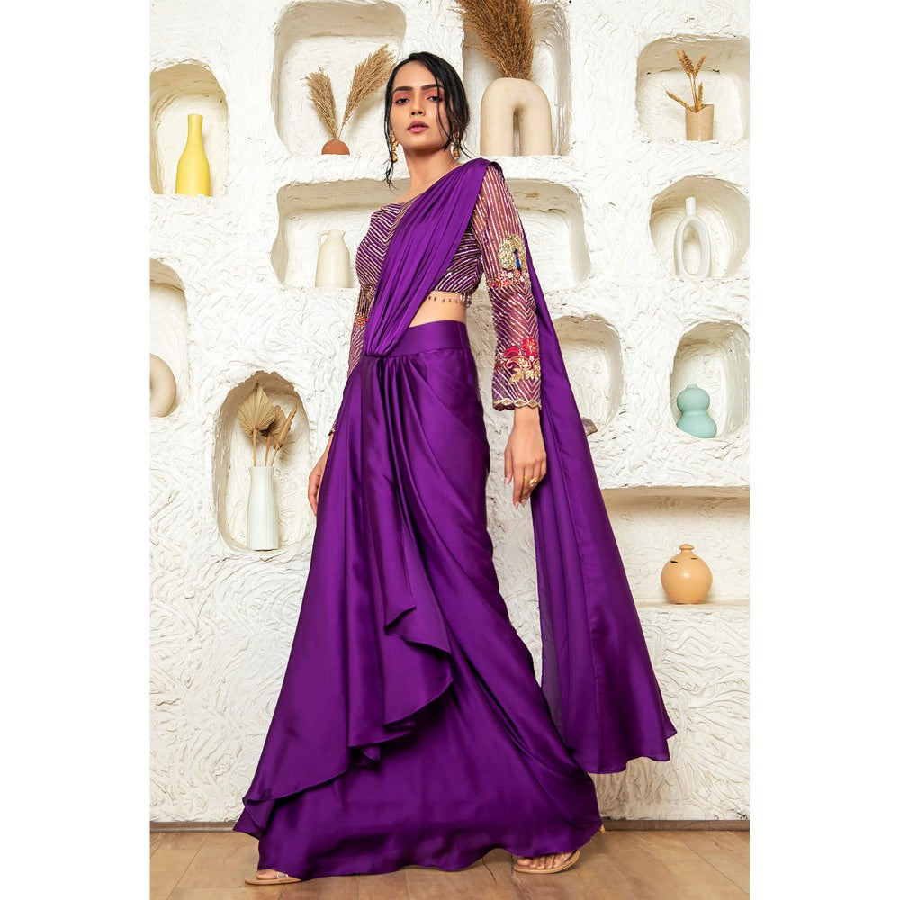 Daatri by meenakshi kakkar Drape Purple Saree with Stitched Blouse