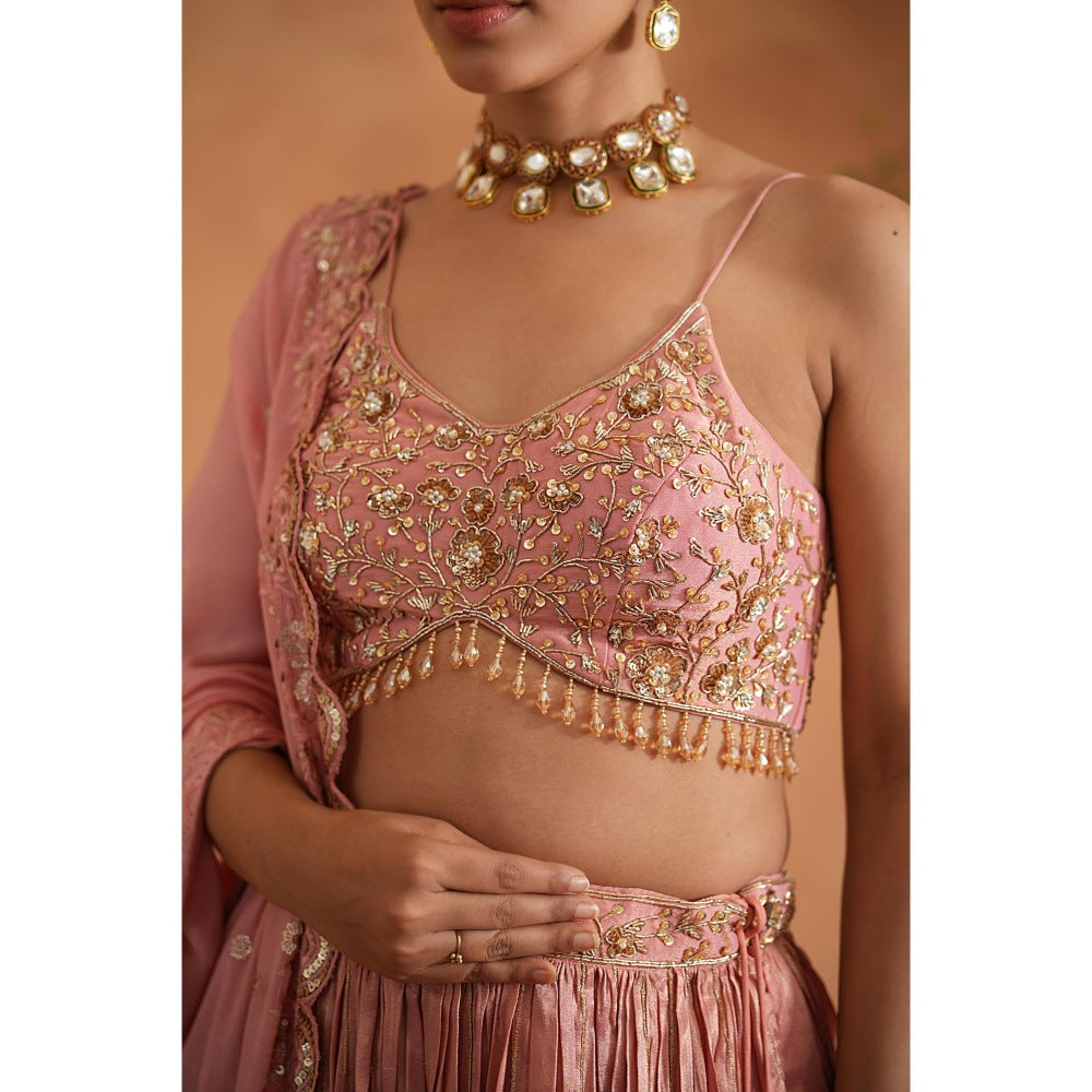 Deepika Chadha Pink Embellished Blouse with Lehenga and Dupatta (Set of 3)