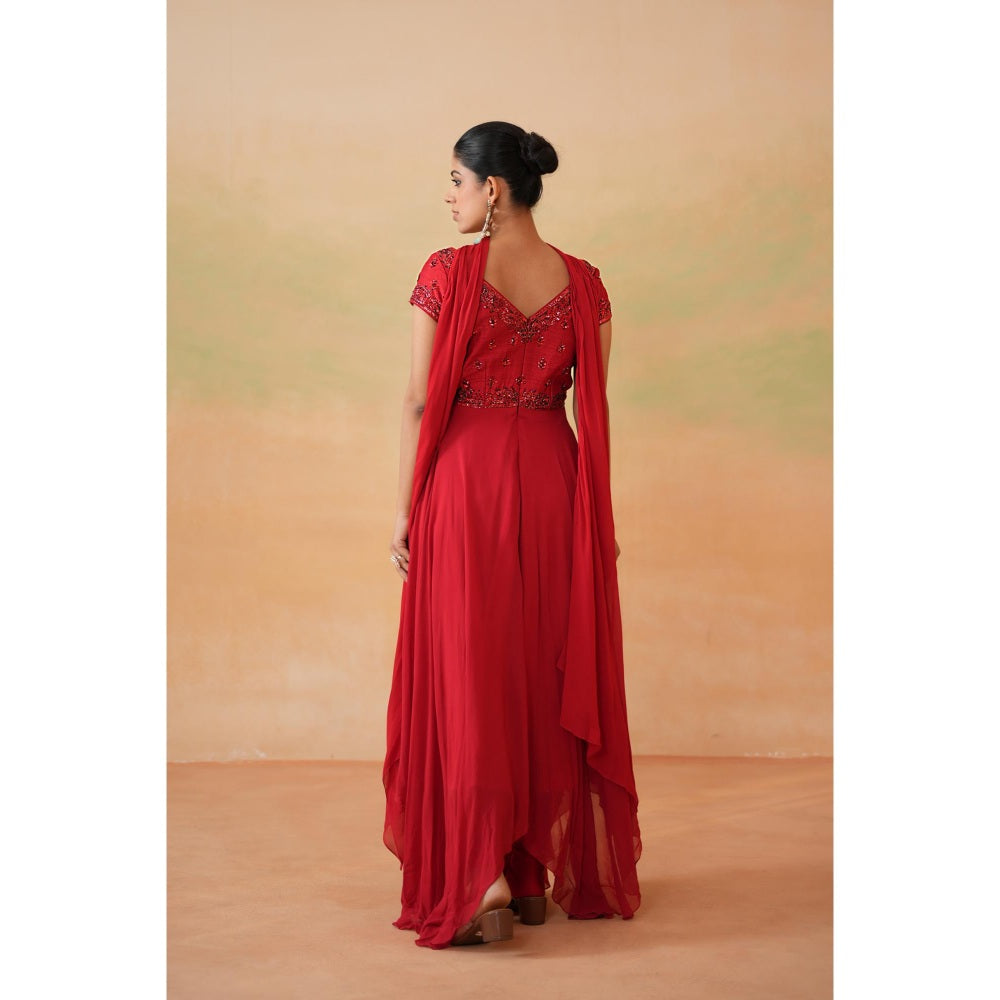 Deepika Chadha Red Embroidered Anarkali with Churidar and Choker Dupatta (Set of 3)