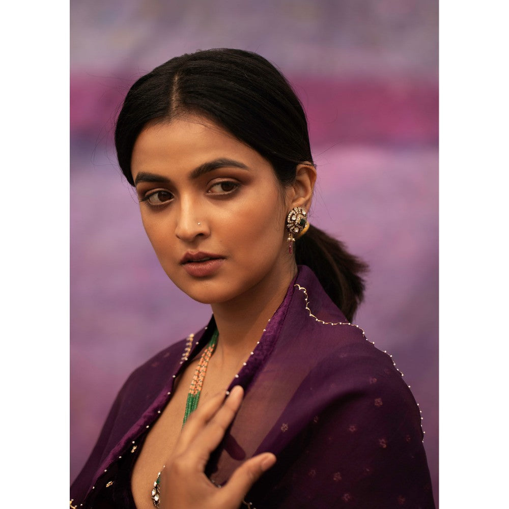 DEEPTHEE Purple Hand Embroidered Short Kurta with Sharara & Dupatta (Set of 3)