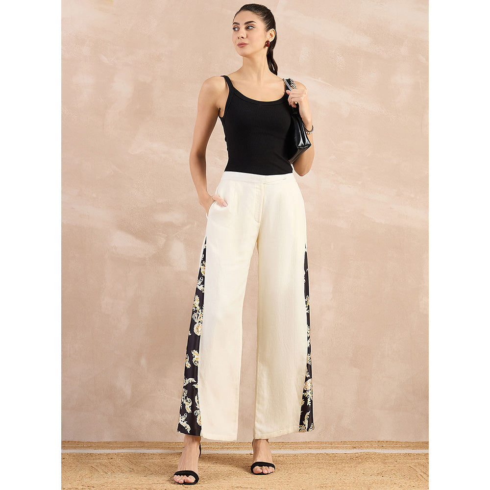 Description : Elevate Your Look With This Baroque Print Linen Wide Pant, A Blend Of Solid-Coloured Linen And Baroque Printed Satin Fabric Detailing On The Flare. It Features A Semi-Elasticated Waistband And Hook-Eye And Zip Closure, These Pant Offer A Comfortable And Adjustable Fit. It Is Finished With Two Functional Pockets, They Combine Style With Practicality. This Pant Is Versatile And Has Contemporary Flare, Perfect For Day-To-Night Wear.