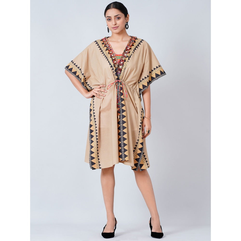 First Resort by Ramola Bachchan Brown Tribal Mid Length Kaftan