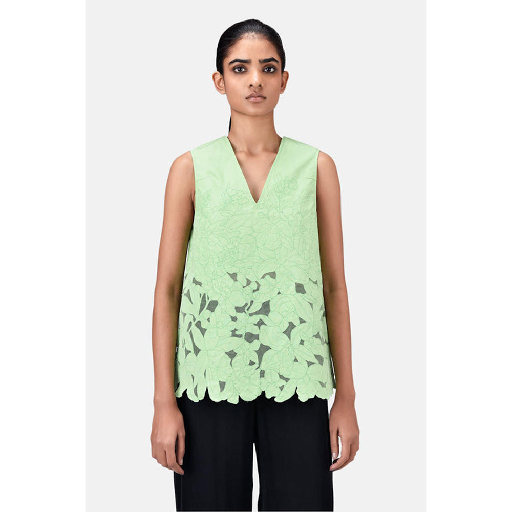 Genes Lecoanet Hemant A-Line Sleeveless V-Neck Top-Mint Green