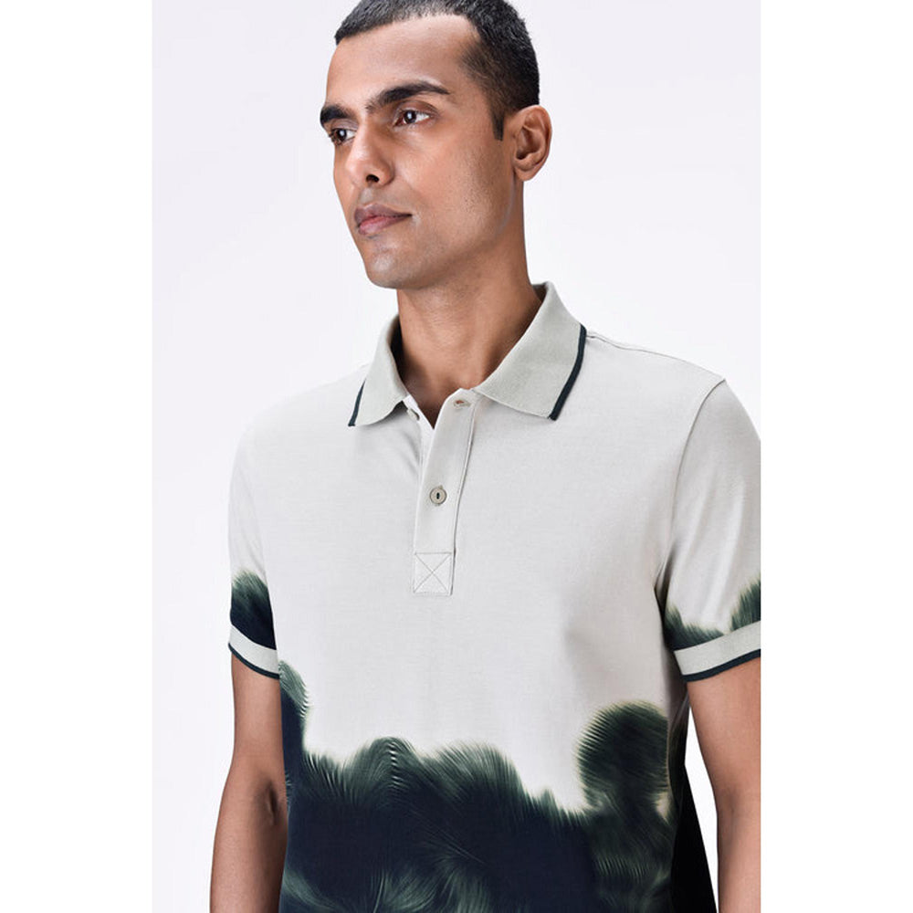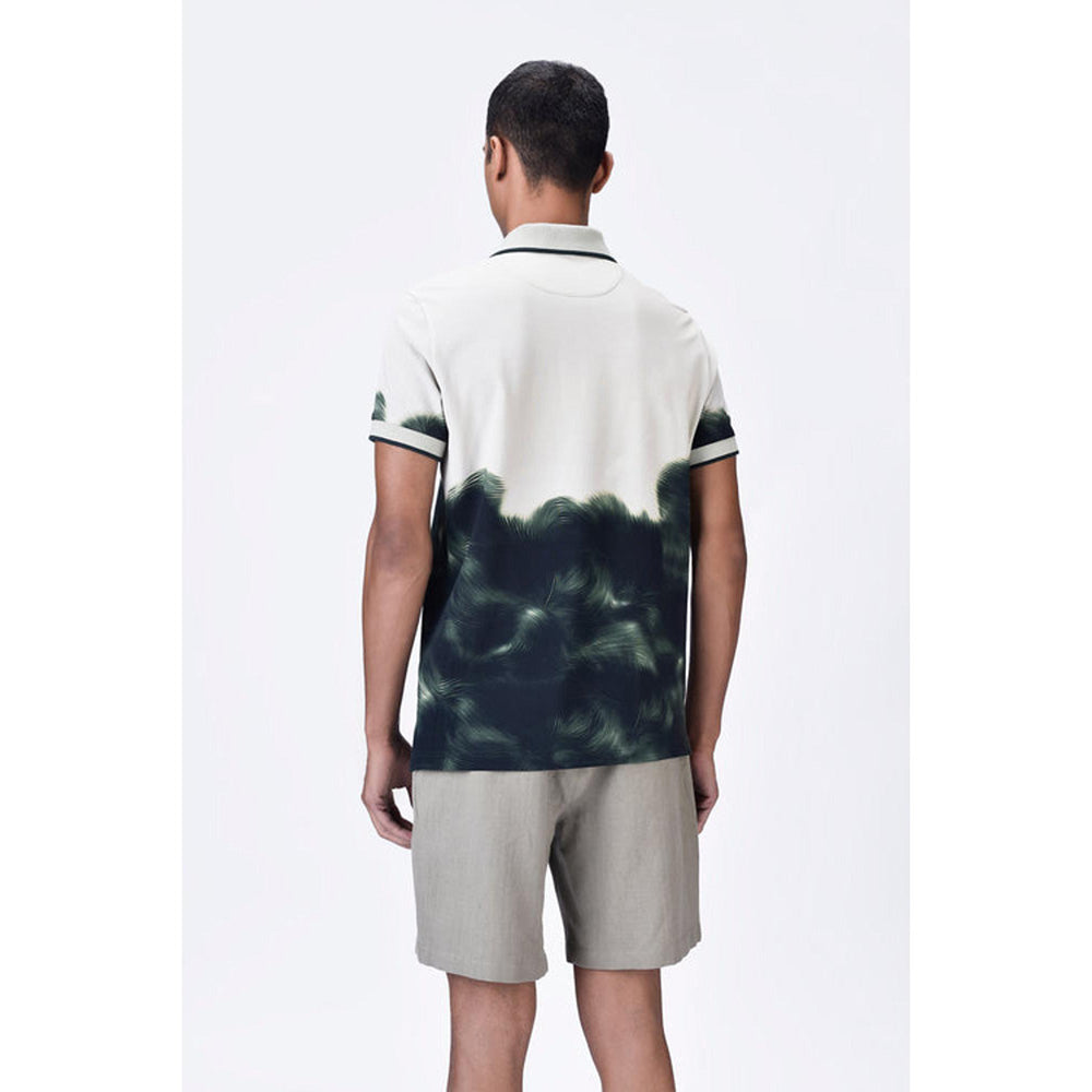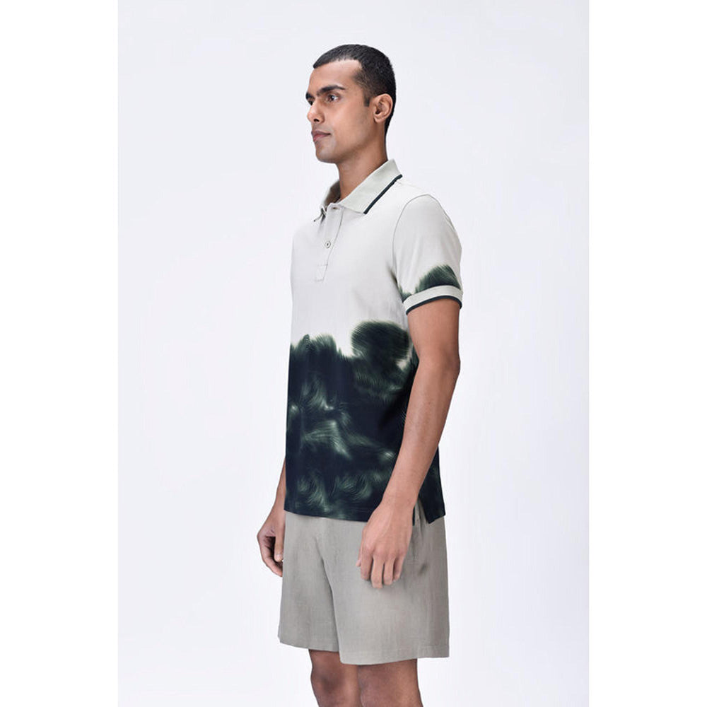 Taupe-Green Uv Abstract Polo T-Shirt