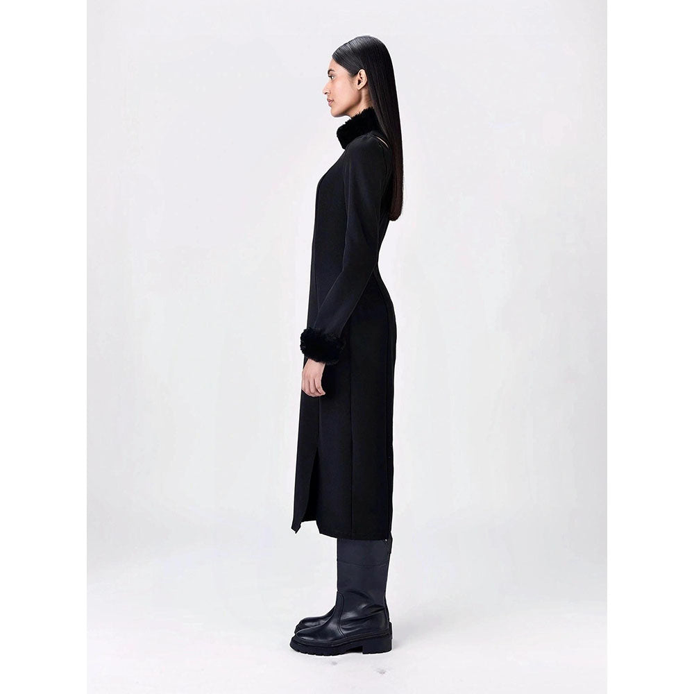 Description : Elevate Your Wardrobe with This Stunning Black Sheath Dress, Crafted From Smooth Polyester Crepe for An Elegant, Refined Silhouette. The High Turtle Neck and Long Sleeves Give A Timeless, Sophisticated Look, While The Stylish Cut-Outs Add A Modern Edge That Draws Just The Right Amount Of Attention. This Midi-Length Piece Is Perfect for A Night Out or A Chic Dinner Party, Effortlessly Balancing Boldness and Grace. Style Tip: Pair It with Statement Earrings and Sleek, Pointed Heels To Bring Out Its Contemporary Allure.
