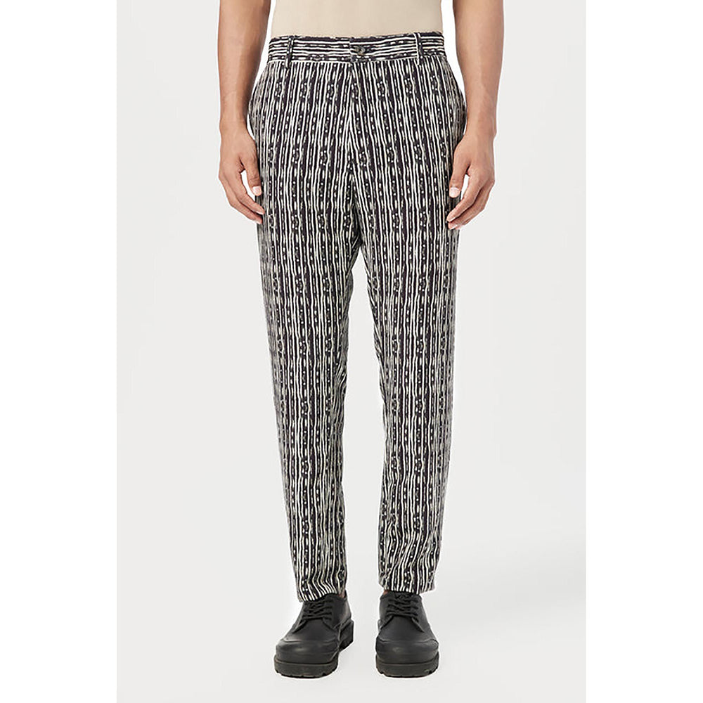 Genes Lecointe Hemant Classic Fit Trousers with All-Over Thin Textured Stripes Print